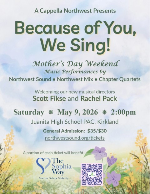Northwest Sound is a men's a cappella chorus based in Bellevue, WA with singers from all walks of life including Microsoft, Boeing, Amazon and other great Northwest Businesses. Singers of all levels are encouraged to visit us and learn more. Auditions are held all year long. Come check us out!
